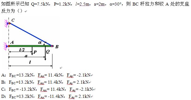 29.[单选题]均质杆AB重P,用铅垂绳CD吊在天花板上,A、B两端分别靠在光滑的铅垂墙面上,则A、B两端反力的大小是下述三种情况中的: