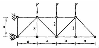 31.[单选题]悬臂桁架受到大小均为F的三个力的作用,如下图所示,则杆1内力的大小为: