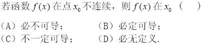 18.[单选题]函数f(x)在x=a点有定义是函数f(x)在x=a点连续的 )