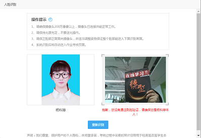 2、出现以下情况之一人脸识别不通过,需重新识别: