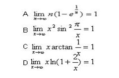 3.[单选题]下列极限中,有一个是正确的,它是( )