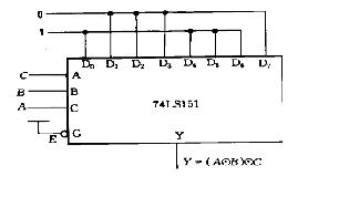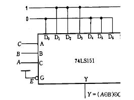 12.应用74151实现如下的逻辑功能:Y=(A⊙B)⊙C,正确的连线电路为()          (满分:2)