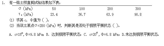 20.土压力计算以及进行边坡稳定性分析,均是以土的( )为基础完成的。 (满分:2)